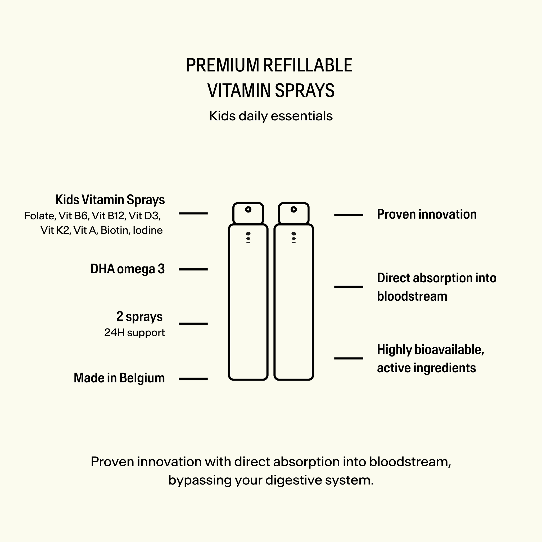 Premium hervulbare vitamine sprays voor kinderen.