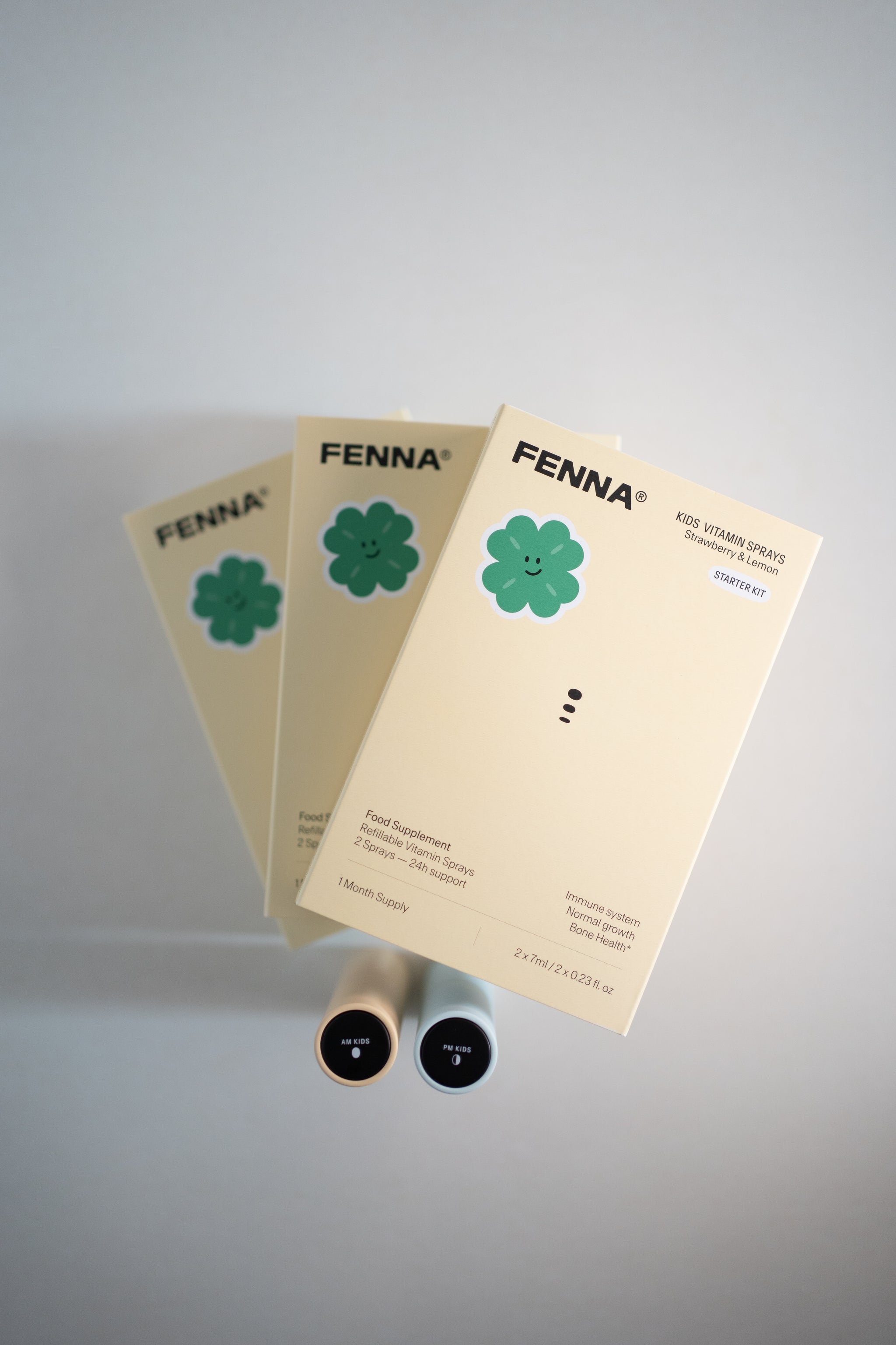Twee kindvriendelijke sprays met 9 essentiële voedingsstoffen om de natuurlijke ontwikkeling van je kind te ondersteunen. Eenvoudig, dagelijks en natuurlijk.