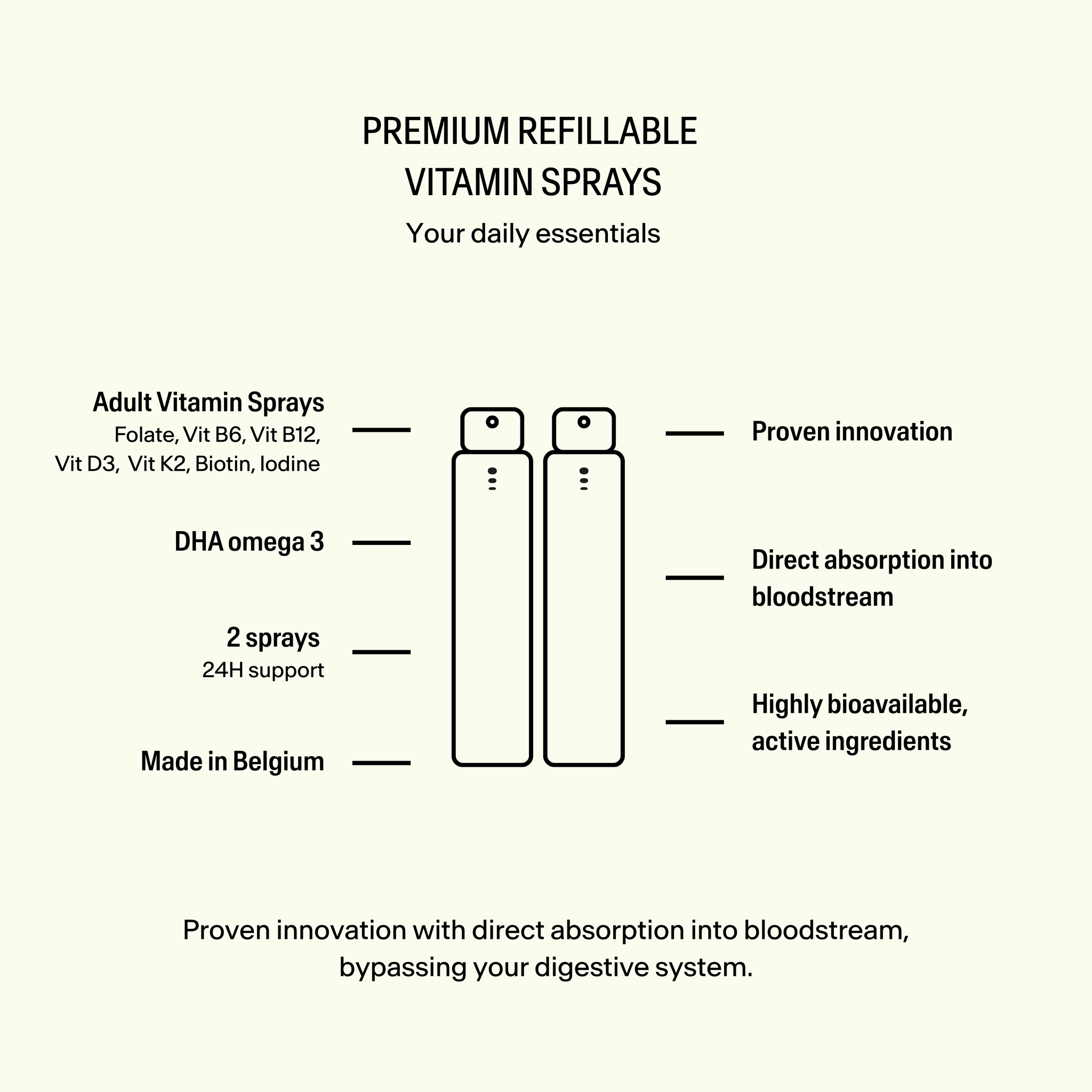 Premium refillable vitamin sprays for adults.